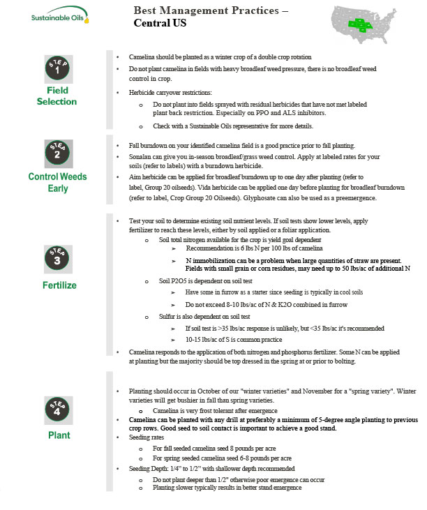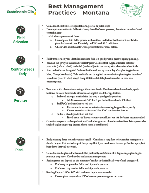 As a part of our commitment to our current and new growers we want to provide them with important information to grow a successful camelina crop from pre-plant to harvest.